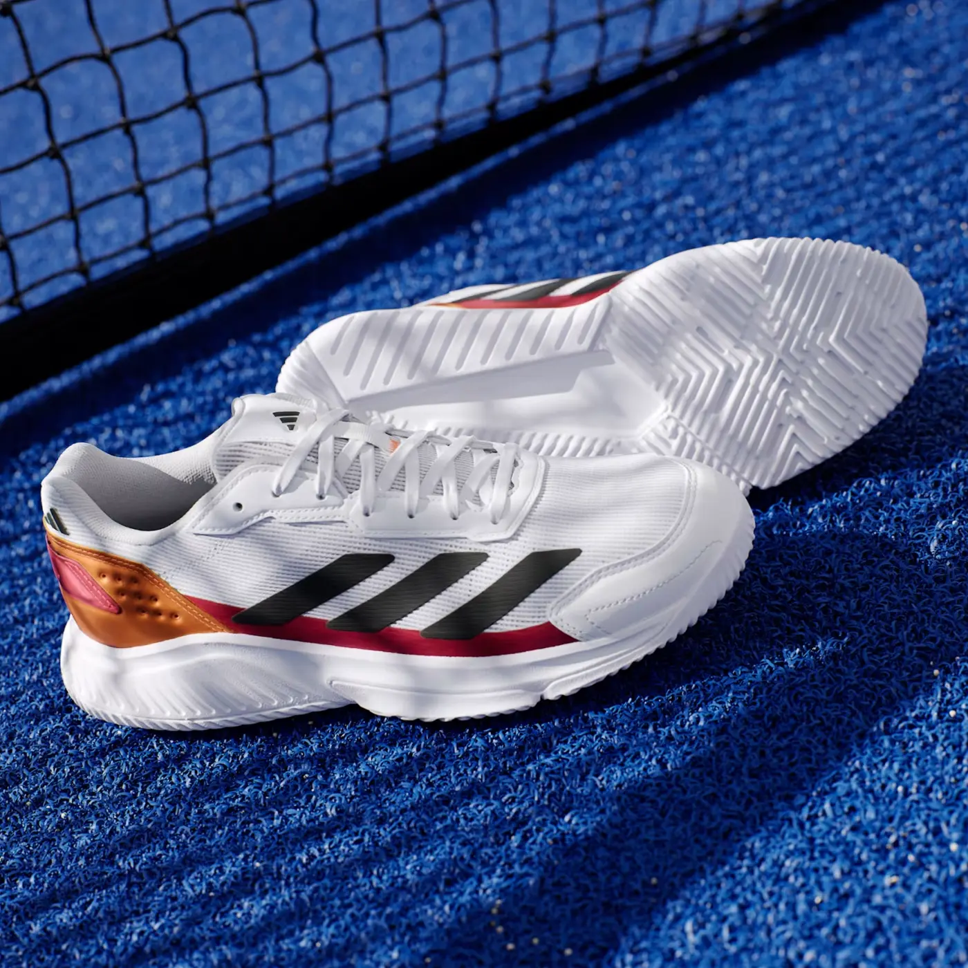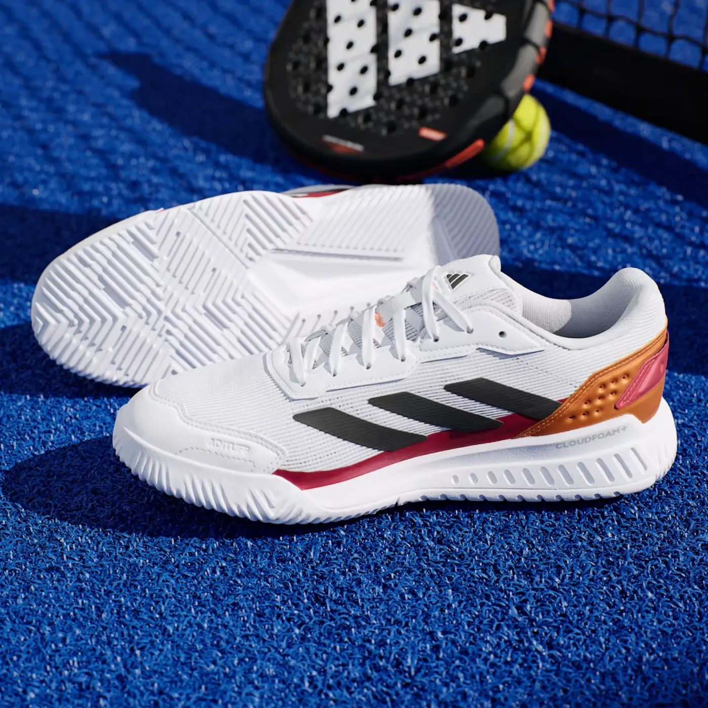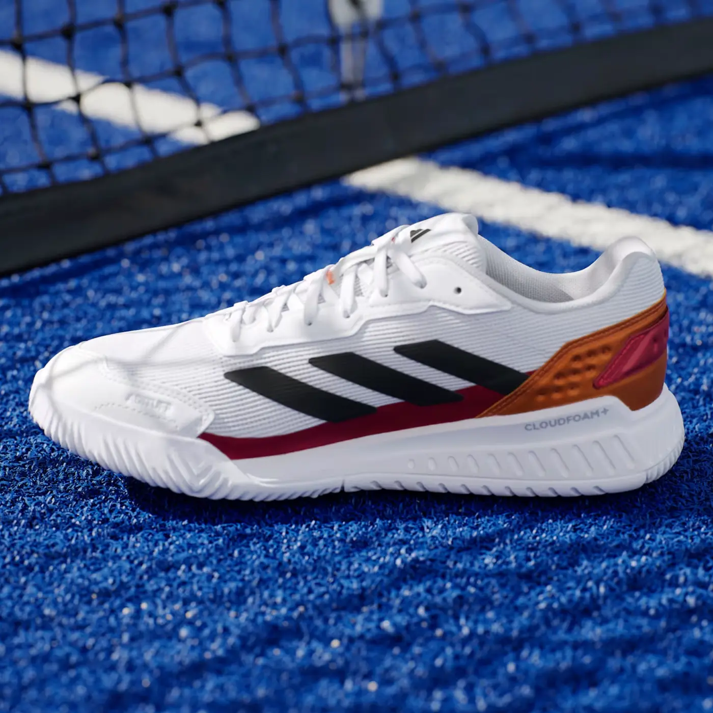 The combination of Cloudfoam cushioning and a flexible Bounce midsole provides a soft, responsive ride that reduces impact and boosts comfort during long playing sessions. Reinforced with Adituff in the toe area, the shoe resists abrasion from slides and intense movement, while the Adiwear outsole ensures strong traction and durability designed specifically for padel dynamics.