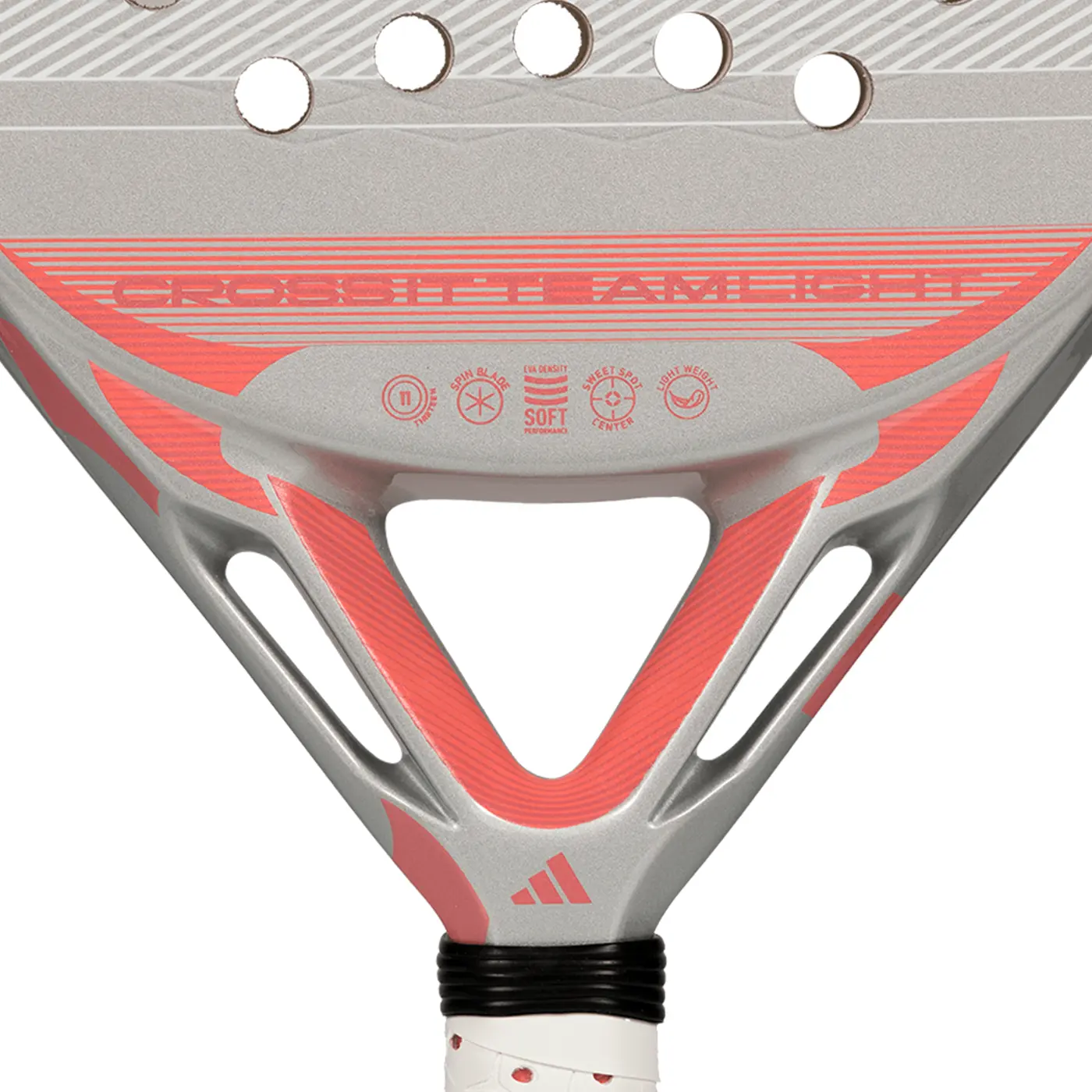 ADIDAS Cross It Team Light 2026 Padel Racket offers lightweight control, comfort, and speed for intermediate players. Crafted with durable Fiber Glass and Soft Performance EVA, it delivers a soft touch with effortless handling. Enhanced with Dynamic Air Flow, Spin Blade Decal, and 11 Thirteen hole system for precise shots and improved spin.