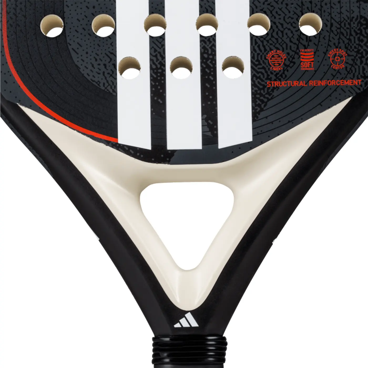 The ADIDAS DRIVE BLACK 3.4 is perfect for those starting out, offering all the features beginners need to improve and gain confidence on the court. Its Structural Reinforcement enhances durability by resisting torsion, while the Smart Holes Lineal pattern strengthens the striking surface for lasting performance. With EVA Soft Performance foam, this racquet ensures excellent ball output and comfort, making every shot smooth and effortless. The fibreglass surface provides a soft touch for better control. Combining comfort, control, and durability, it’s an ideal choice for those just starting their padel journey.