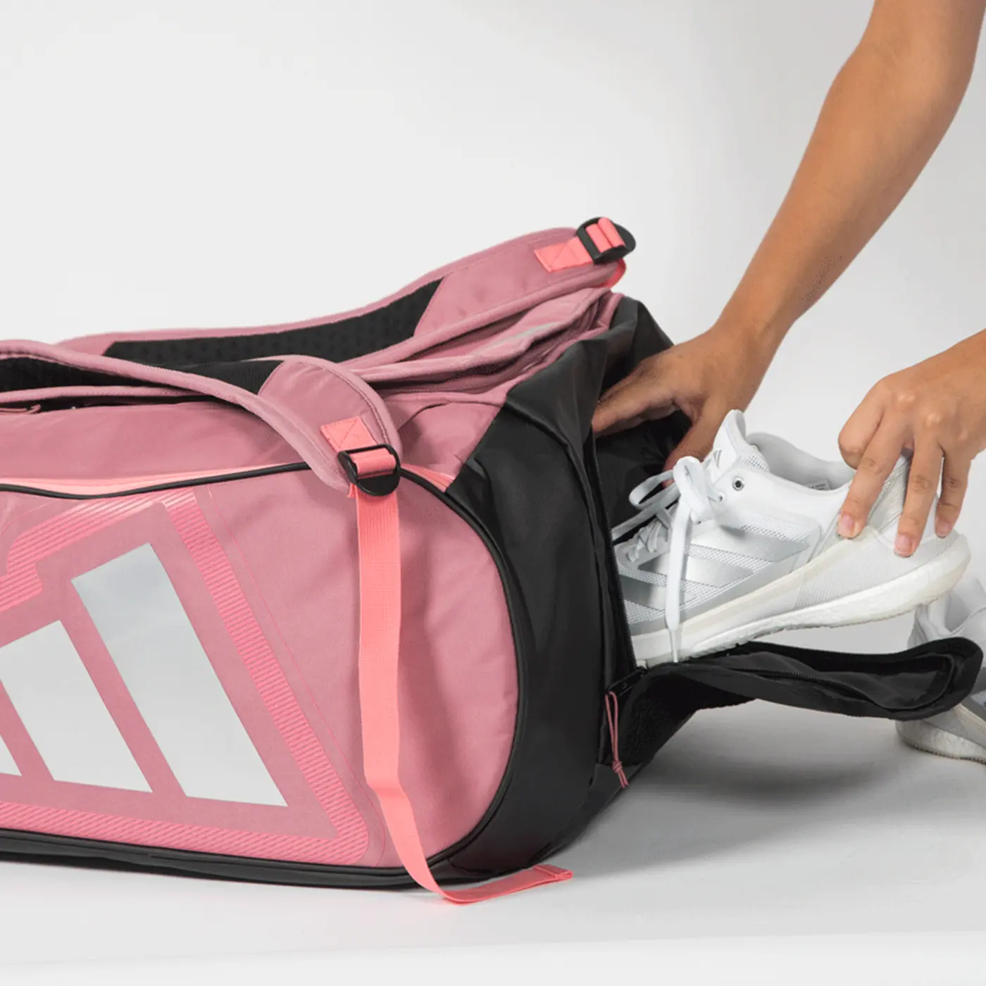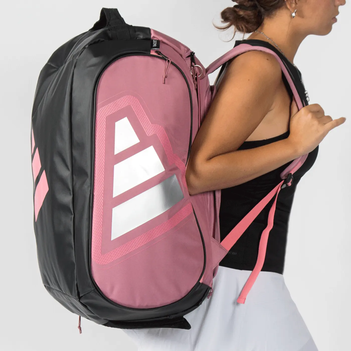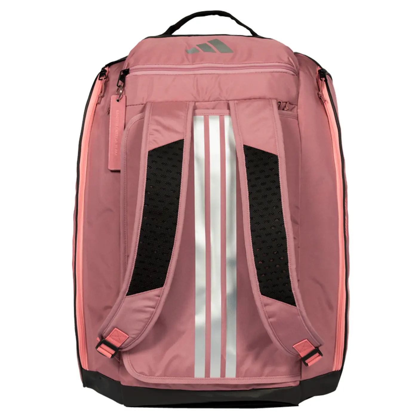 ADIDAS Pro Tour Martita Ortega Padel Bag is designed in collaboration with professional player Martita Ortega, combining her signature elegance with top-level performance. This updated silhouette features a spacious main compartment with a double zipper, two side thermal pockets to keep your rackets protected from temperature changes, and a ventilated section ideal for storing shoes or wet clothing after intense matches.