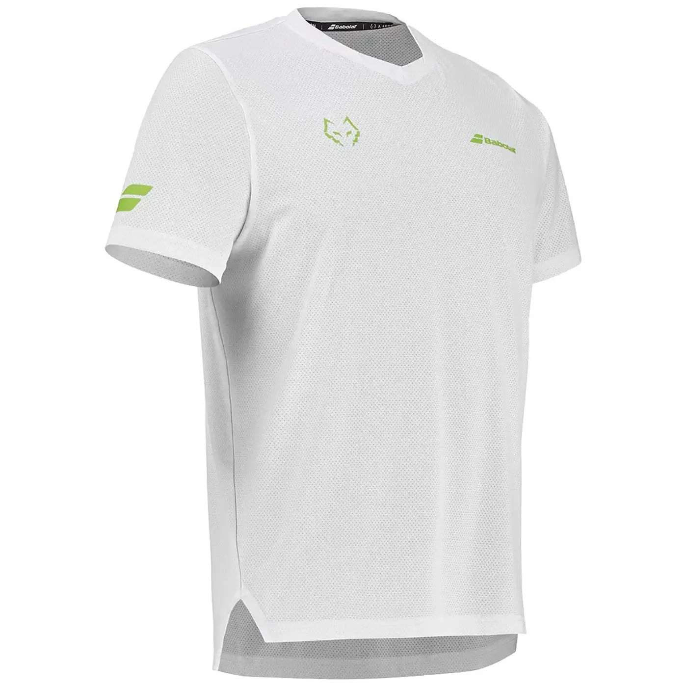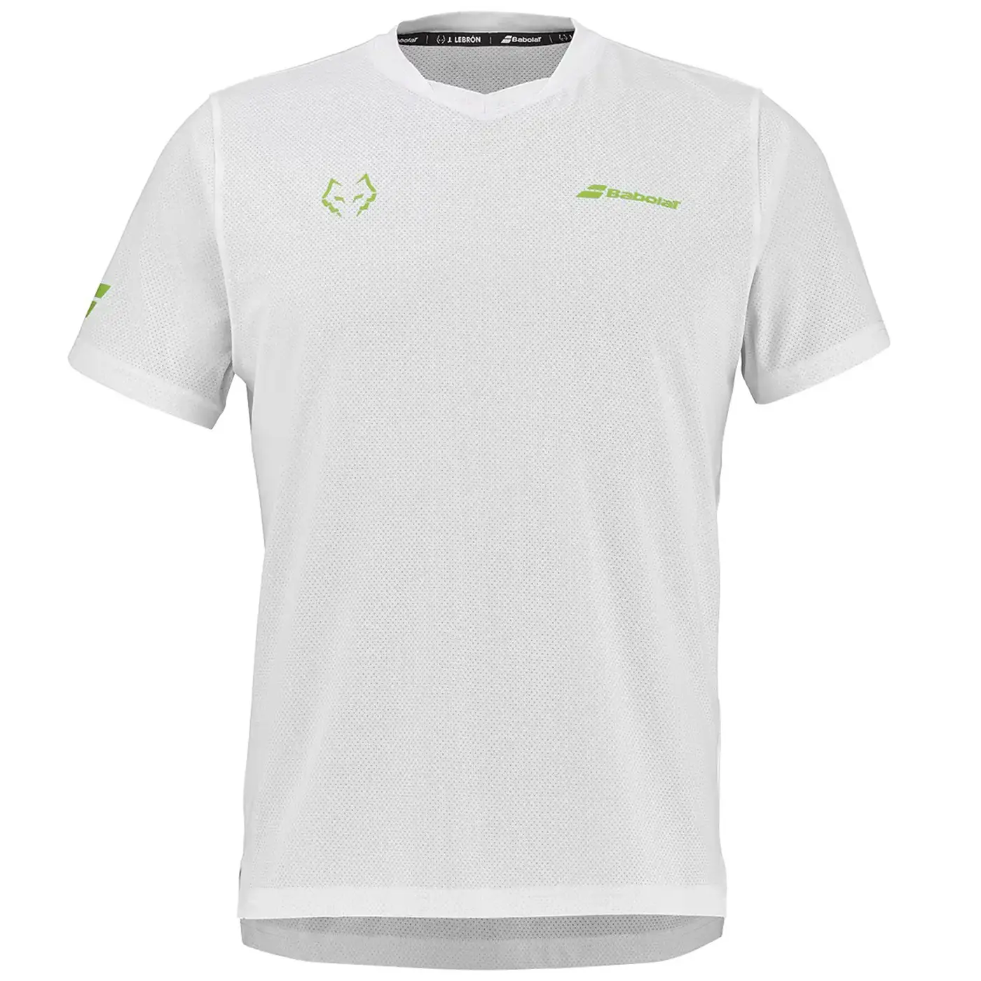 The classic crew neck and short-sleeve construction ensure optimal mobility, while the front features the signature Babolat and Juan Lebrón logos, giving the shirt a bold, professional identity. Whether you are training or competing, this top lets you wear the same style as Juan Lebrón while benefiting from advanced performance materials.