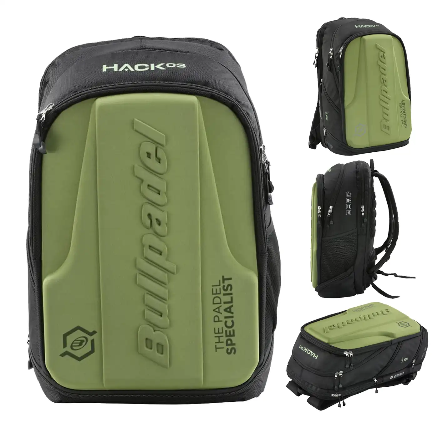Elevate your paddle tennis game with the Bullpadel padel pack included with Bullpadel Ionic CTR FIP 2023 Padel Racket—perfect for intermediate to advanced players seeking power and precision. Paired with the BULLPADEL BPM-23001 Hack Khaki Padel Backpack, designed in collaboration with Paquito Navarro for his Hack 03 padel racket. This sleek backpack offers ample storage, including thermo-reinforced racket compartments, ventilated gear sections, and a padded gadget pocket. It combines style and functionality for an unparalleled padel experience.