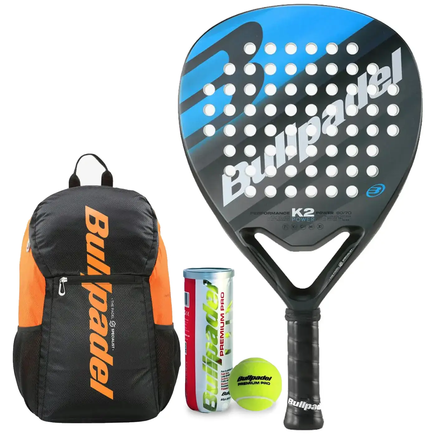 Unleash your padel potential with the complete Padel Pack by Bullpadel. This premium collection includes the Bullpadel K2 Power 2023 Padel Racket, engineered for unmatched precision and power. The Bullpadel Performance Padel Backpack, a stylish and functional accessory to carry your padel racket and accessories conveniently, and a set of Bullpadel Padel Balls, designed for consistent bounce and durability. Elevate your game with this dynamic trio, tailored for padel enthusiasts who demand the best in quality and performance. It’s your turn to shine on the court with Bullpadel’s winning combination.