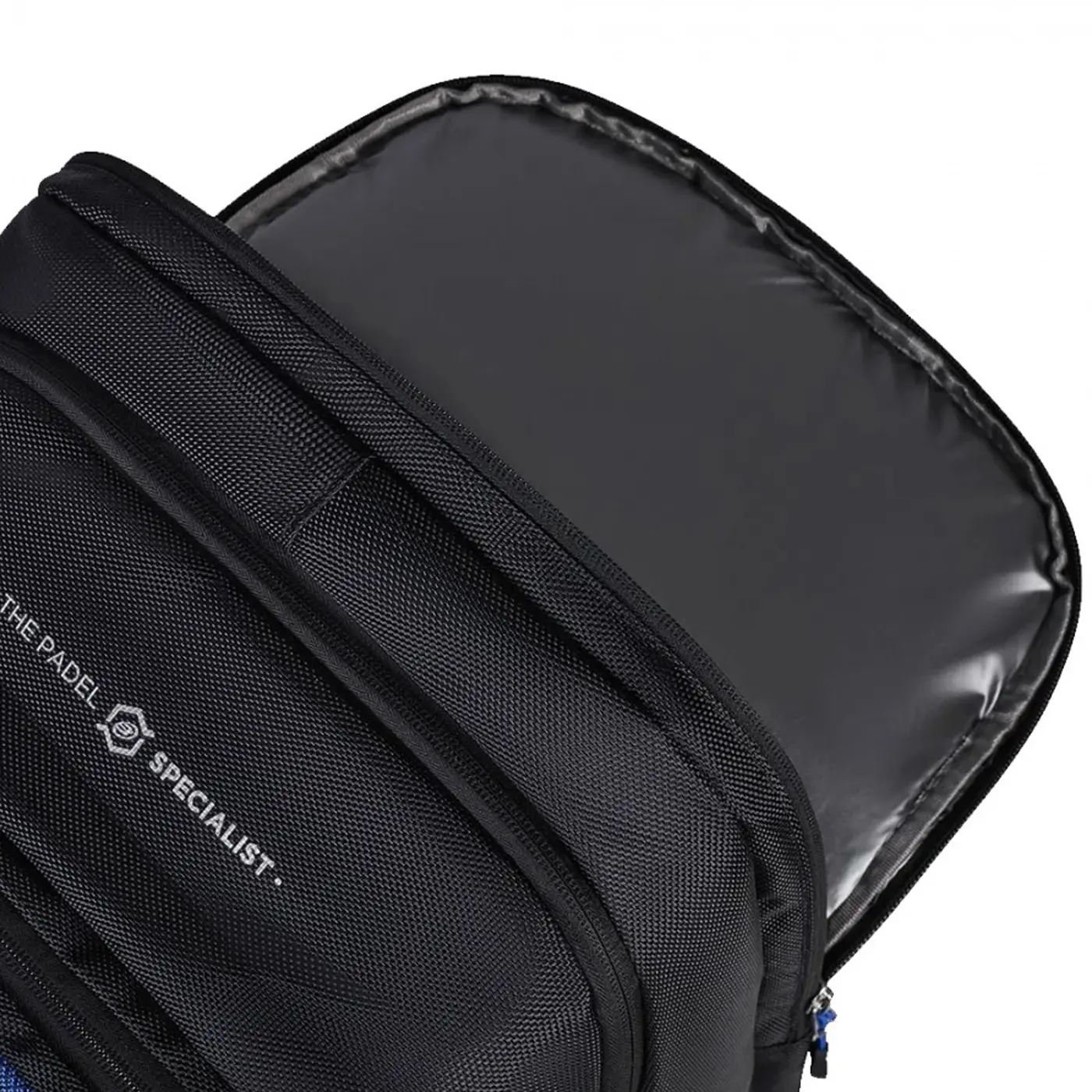 This model features a reinforced thermo-insulated section capable of storing up to two rackets. The thermal lining helps shield them from sudden temperature changes while also offering added protection against impacts, helping maintain optimal performance over time.