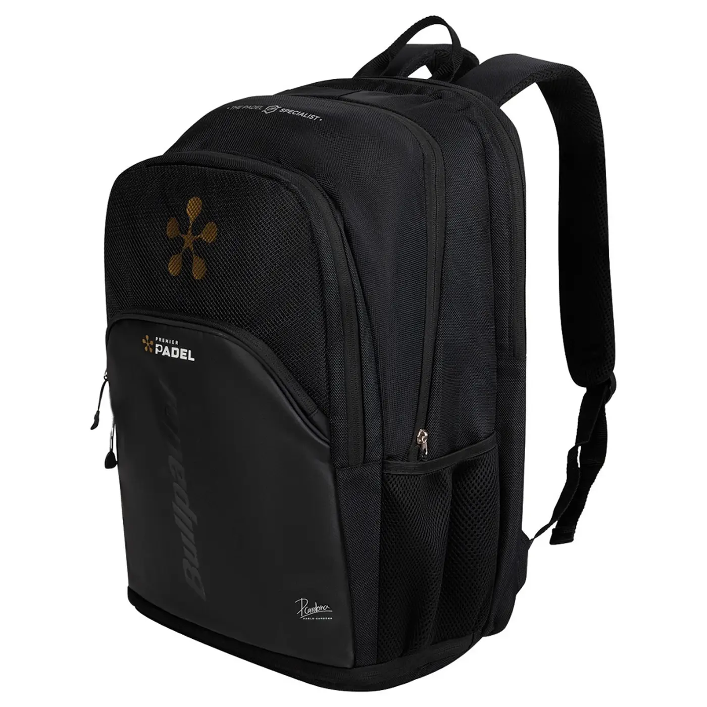 Part of the Bullpadel 2026 collection, this backpack matches the Premier Padel aesthetic with a sleek and professional black design.
