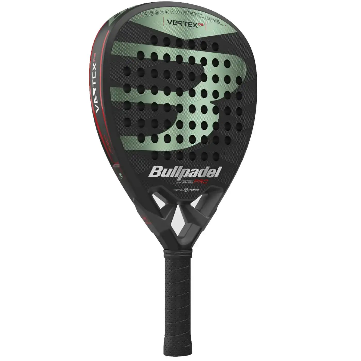 The Vertex is a racket shaped like a diamond, high power, high loss-of-control performance and with a rough surface star for greater effect and ball control. It is designed for advanced players and intensive Its outer core is made up of Glaphite Blending Fiber glass with carbon fiber The inner core compose made of MultiEva rubber and its frame carbon fiber carbon tube 100%. It has a protector nylon in 2 densities 2DProtect with 7 anchors. Dispose of Vertex heart and features the new 3DGrain rough surface star shaped getting the perfect balance between control and a greater effect of the ball.