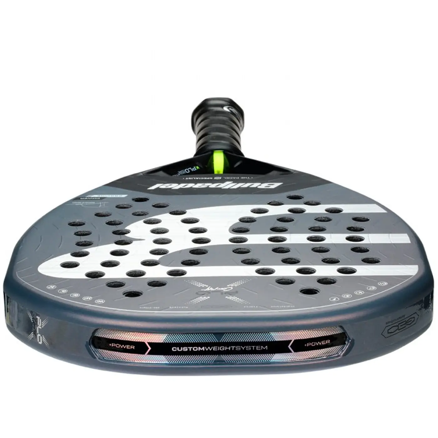 With innovations from Bullpadel-Lab such as ExoFrame reinforcements, Air Power, Wave System, Ease Vibe dampeners, and Smart Holes technology, the XPLO CMF is engineered to unleash radical power while reducing vibrations and enhancing stability. It’s the perfect racket for players who want explosive strength with a touch of comfort.