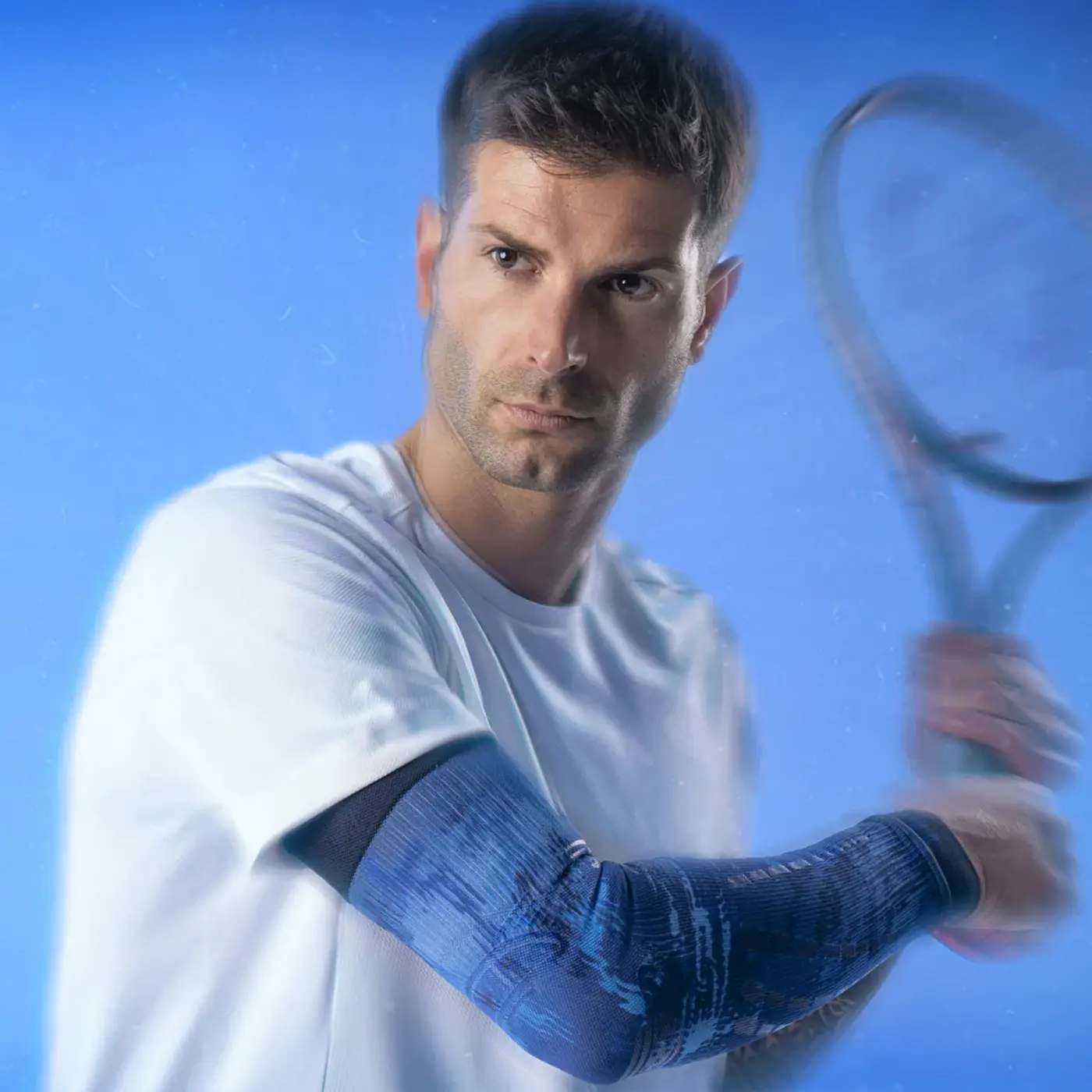The FLOKY Arm Sleeve No Strain Evolution 2026 Fantasy Blue is a biomechanical compression sleeve engineered to protect the elbow and forearm during high-intensity sports. Designed with localized compression and anatomical silicone applications, it stabilizes the musculotendinous structures of the arm and reduces harmful vibrations. This improves performance, reduces fatigue, and supports faster recovery.