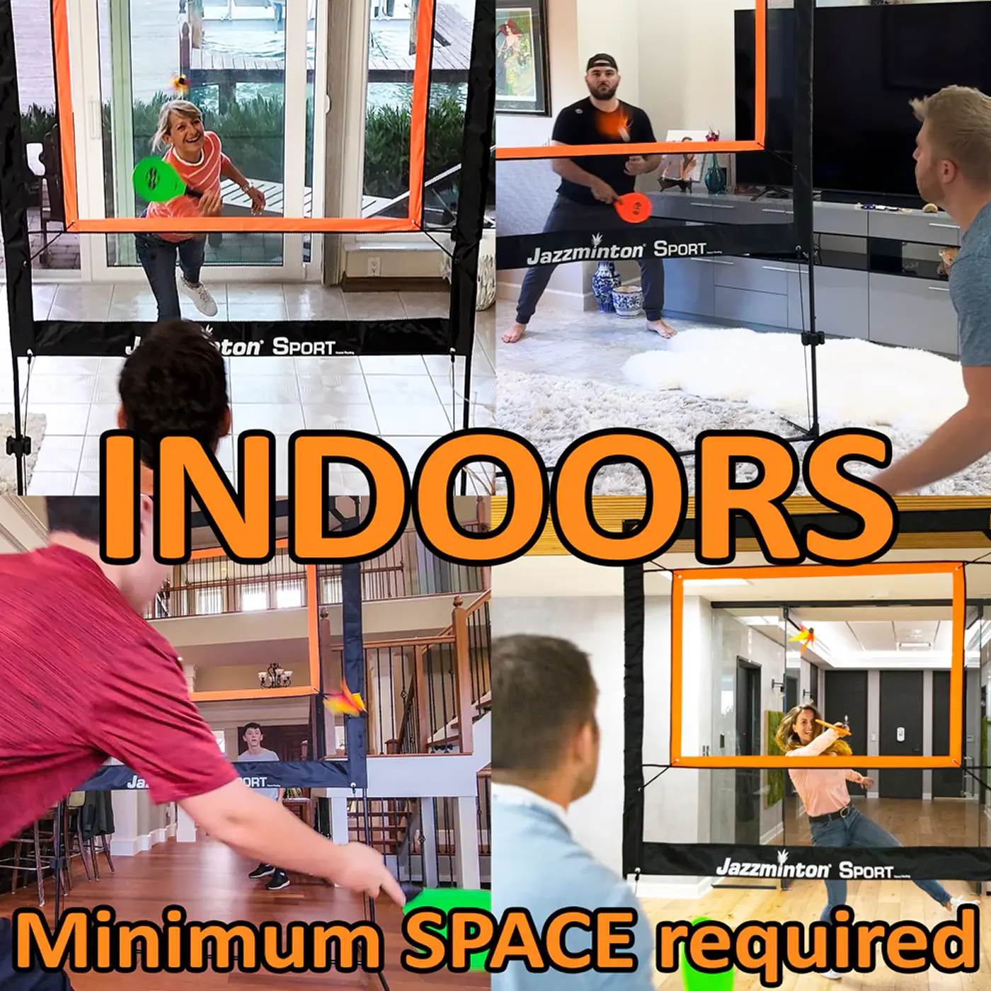 Whether it’s your backyard, beach, basement, or living room, Jazzminton Sport is designed for convenience. It sets up in just 1–2 minutes with snap-together rods and requires only a small playing space — no official court needed.