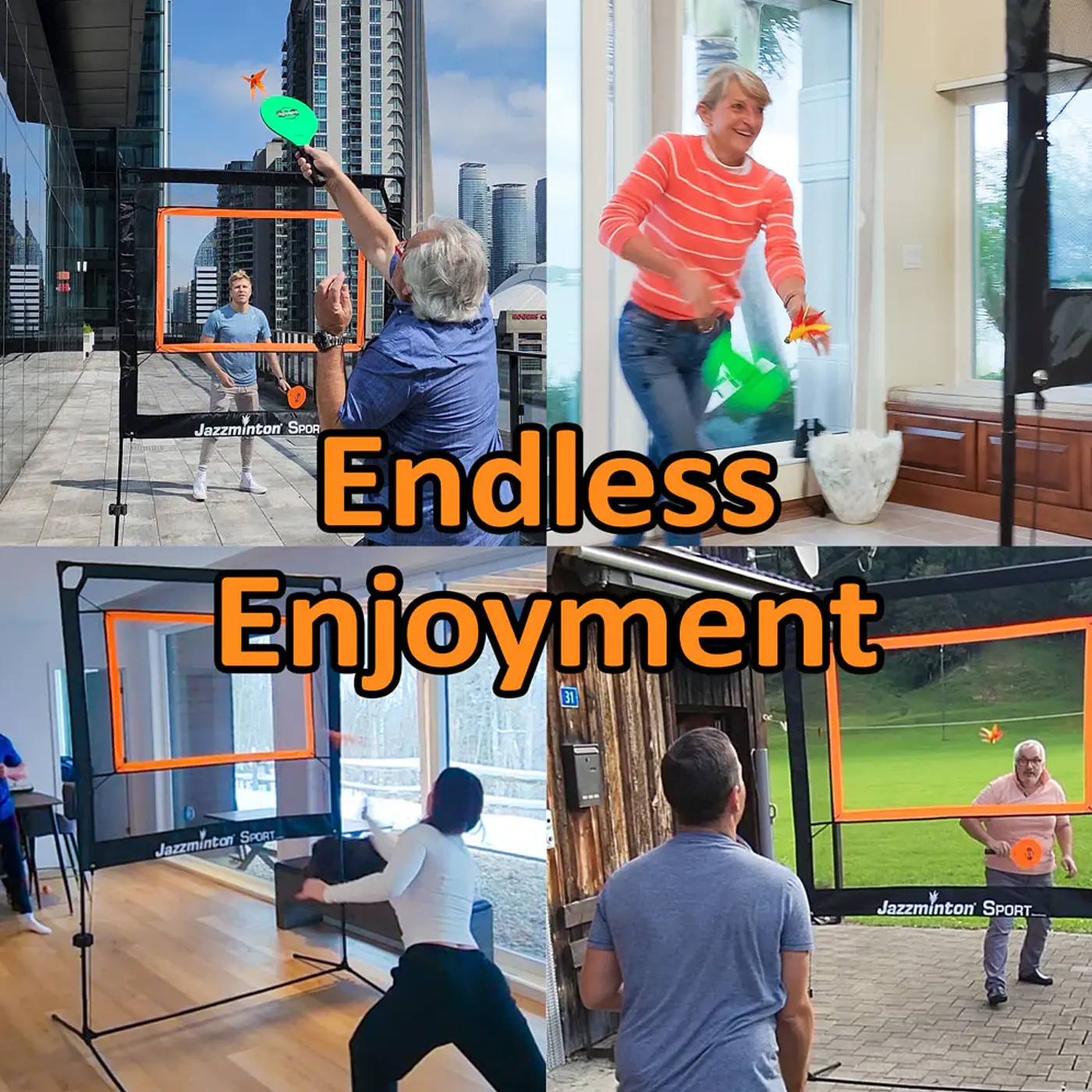 Experience Jazzminton Sport – a fast-paced paddle game with Dynamic Brake™ birdies for smooth rallies. Set up in minutes and play anywhere, indoors or out. Perfect for pickleballers and racket sport lovers!