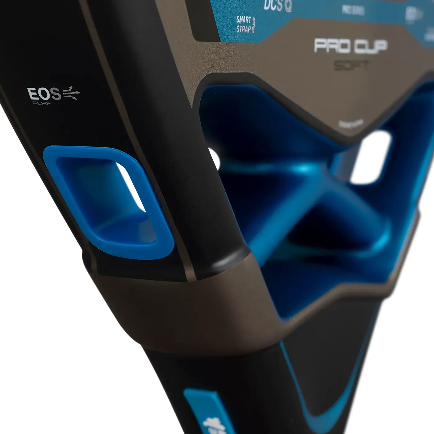 The surface incorporates Exclusive Spin technology, combining a central 3D hexagonal texture with a sandblasted finish to maximise spin and ball grip. Thanks to Dynamic Composite Structure (DCS) reinforcement, durability is enhanced, reducing risks of breakage on off-centre hits.