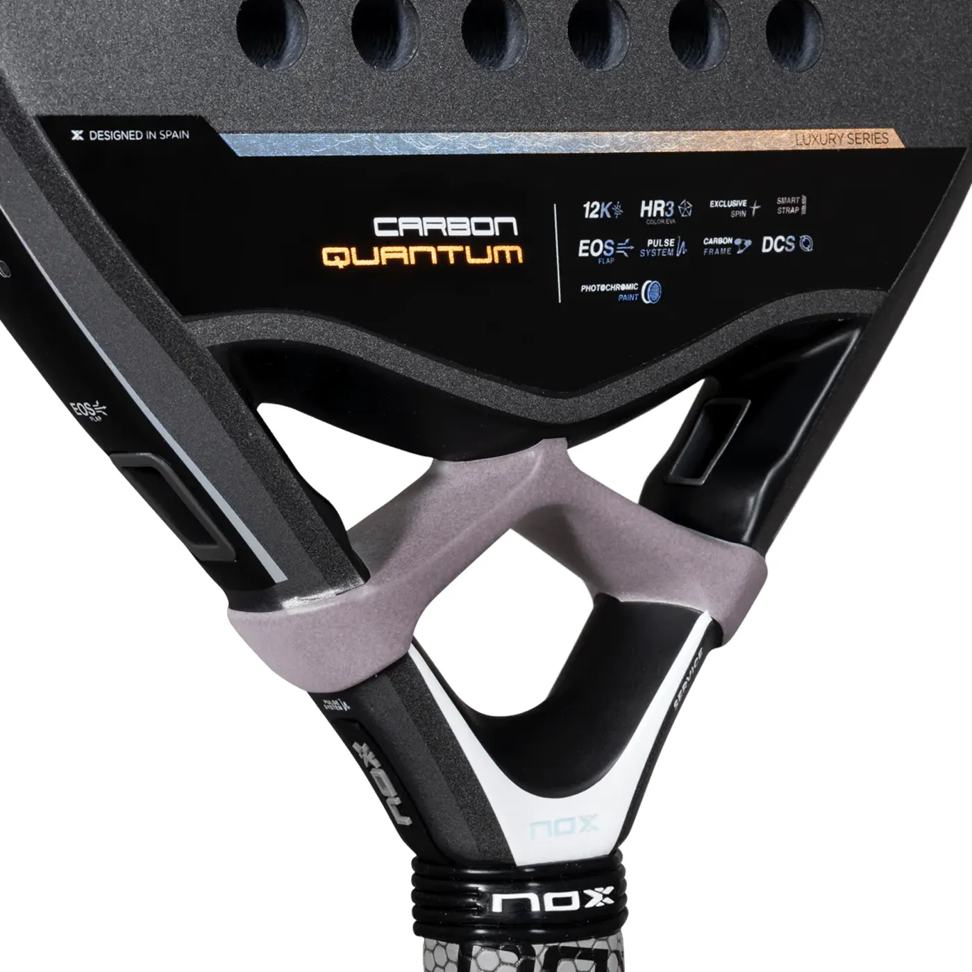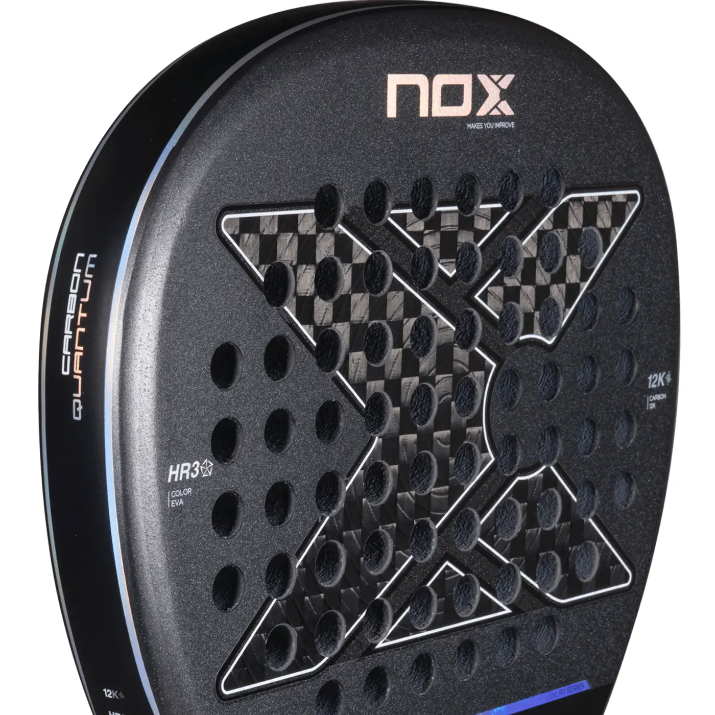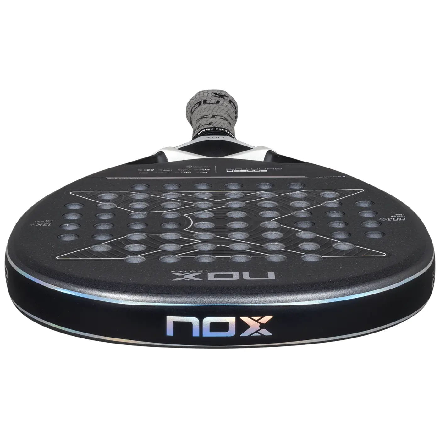 The NOX Padel Racket Quantum 12K Carbon 2025 is a high-performance padel racket designed for speed, control, and power. Featuring EOS Flap aerodynamics, 12K carbon, HR3 Color Eva core, and Exclusive Spin technology, it delivers exceptional maneuverability, reduced vibrations, and superior grip for an elite playing experience.
