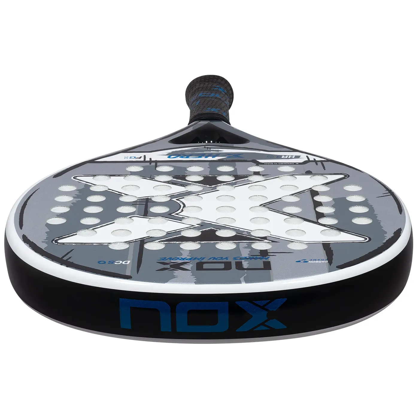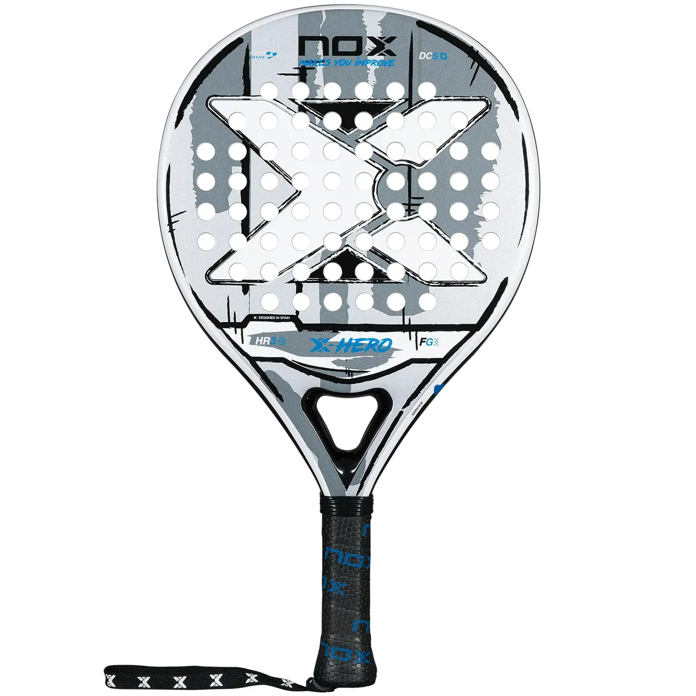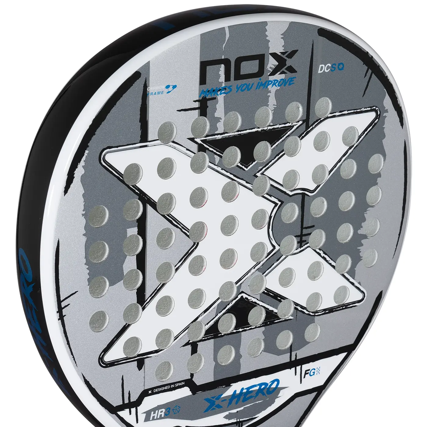 NOX X-Hero White 2026 padel racket offers control, comfort, and maneuverability with HR3 White EVA core, carbon frame, and 3K fiberglass faces for beginners and intermediates.