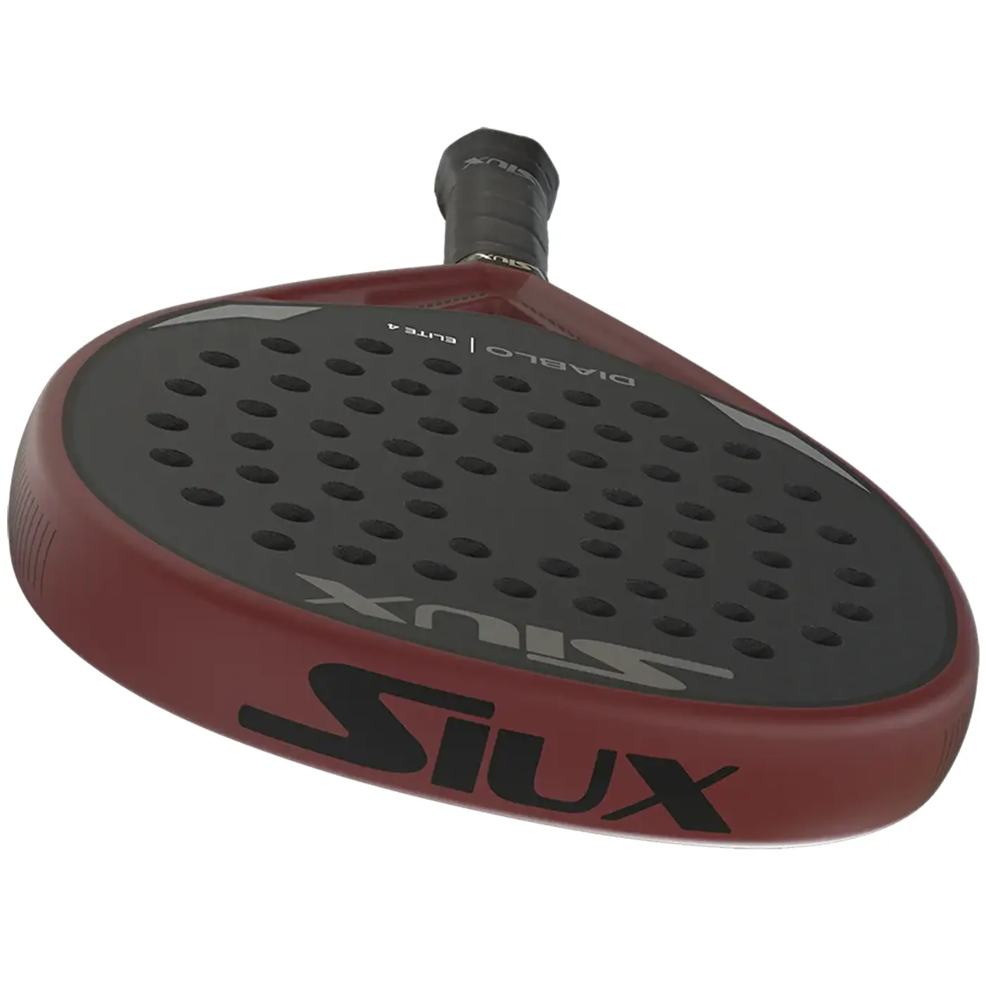 The SIUX Padel Racket DIABLO ELITE 4 2025 is a versatile padel racket with 12K carbon, medium balance, and a rough surface, delivering precision, power, and comfort for advanced players.