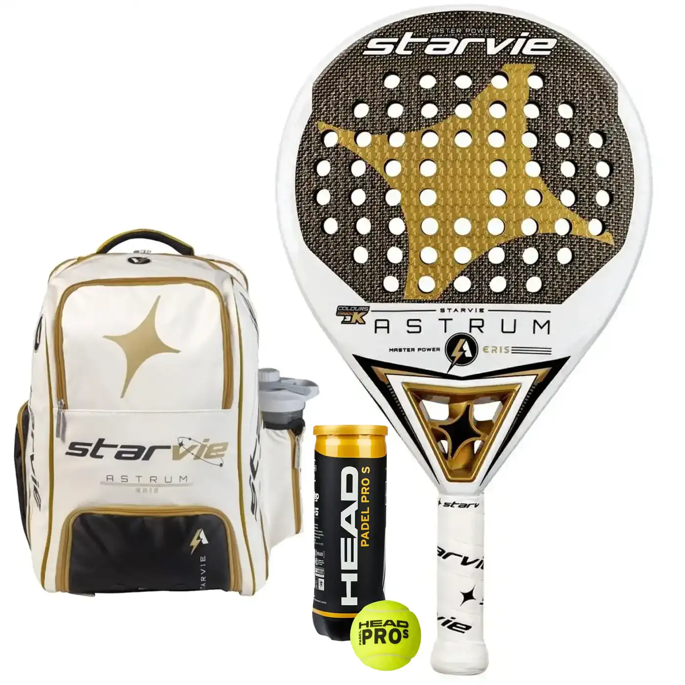 Introducing the Astrum Eris Padel Pack – Elevate your padel game with the Astrum Eris padel racket 2022, boasting a unique blend of new fiber-glass and Gold Carbon Colours 3K for unmatched precision and power. Accompanied by the Star Vie Padel Backpack, featuring multiple compartments, a ventilated shoe section, and convenient storage options.We have also added free Head padel balls to complete your padel pack. This pack is your ultimate padel solution, providing unrivaled performance and gear transport in style. Upgrade your game today!