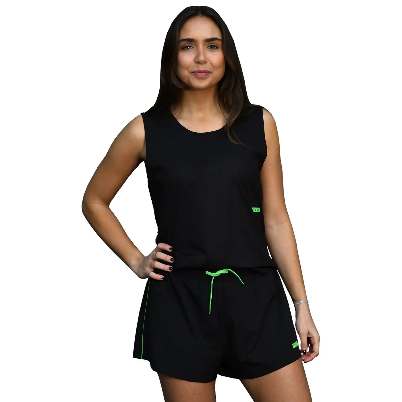 VOLT Performance Women Padel Skort Black Green delivers lightweight comfort and flexible performance for competitive play. Designed with breathable stretch fabric and integrated inner shorts, it ensures secure coverage and unrestricted movement. The quick-drying material keeps you cool while maintaining a modern athletic look on court.